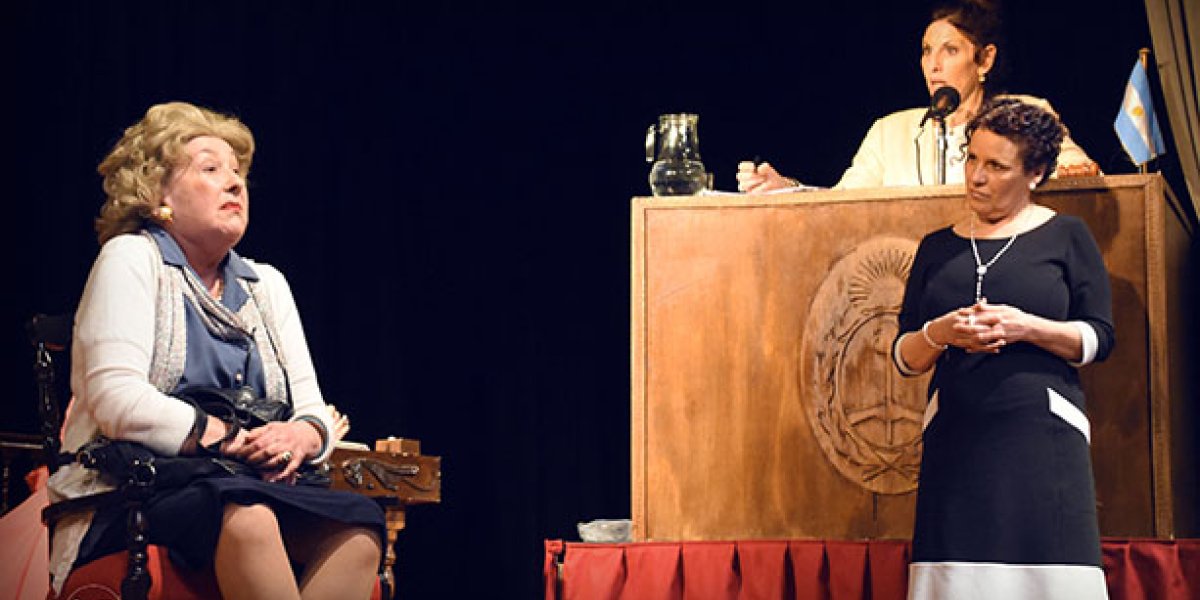 Al ingresar al teatro veo una amontonada cola para retirar las entradas. Al tenerlas en mano intento pasar para el patio en función de descomprimir el espacio de la “boletería”, en ese instante soy frenada por una policía, sí una policía que me pide ver las entradas. Intento no reírme de la extraña situación de mientras que entiendo que la obra empieza desde antes de que nos sentemos en las butacas.