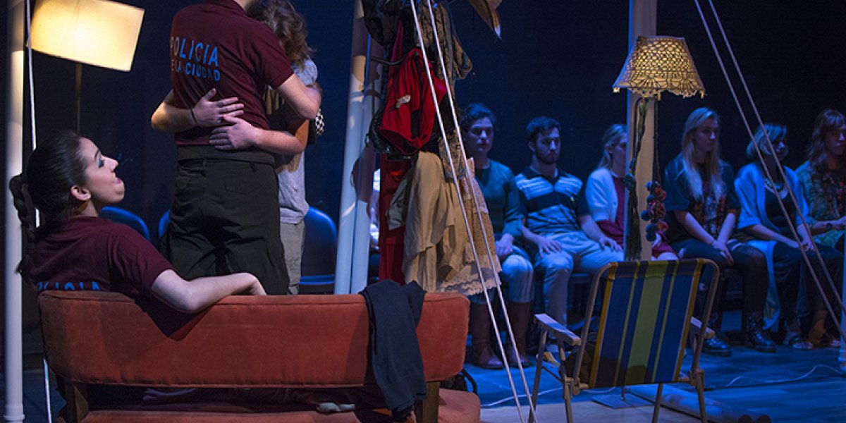 En escena hay doce actores y actrices, parece bastante cantidad en relación al espacio, pero no lo es. Los personajes nunca se van del escenario, siempre están presentes, salen y entran pero constantemente los vemos. Al ser cada espacio tan reducido, es muy lindo observar los objetos cuidadosamente elegidos para exponernos la identidad de cada habitante del edificio. El resto lo debemos imaginar nosotros, los espectadores.