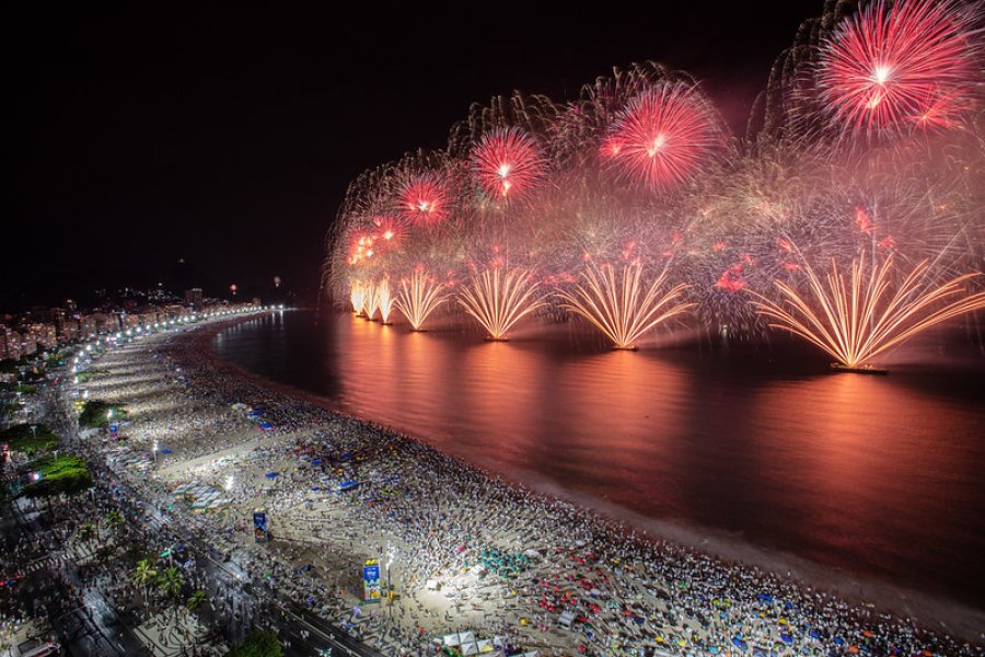 La celebración en Rio de Janeiro es masiva y convocante: dos millones de personas vestidas de blanco suelen seguir la cuenta regresiva en las arenas de Copacabana, donde las luces coloridas de los fuegos artificiales a la medianoche son el preludio de shows musicales que se extienden hasta el amanecer. Además de la fiesta gratuita y abierta a todo público en la mayor playa de la zona sur de la ciudad, el festejo se replica en otras zonas como Ramos, Flamengo, Penha, Parque Madureira, Sepetiba, Ilha do Governador e Ilha de Paquetá, además de los barrios de Praça Mauá y Bangu, con la premisa de democratizar la celebración por toda la capital y sus alrededores.