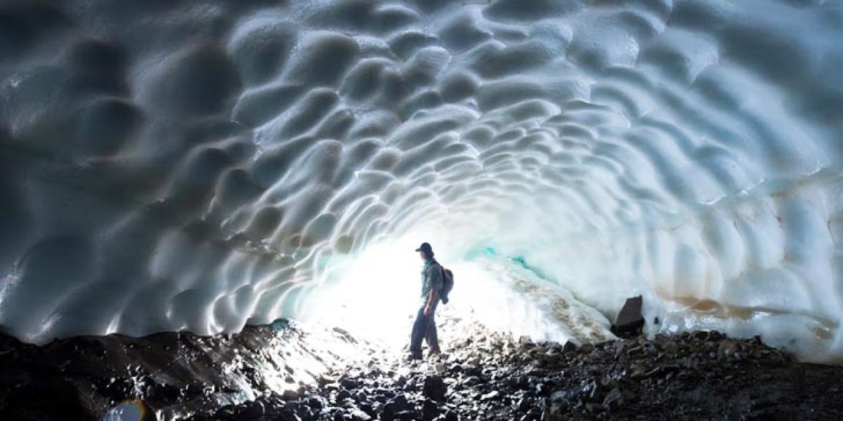 Los túneles se forman debido a características particulares del hielo en esta zona alta de la montaña, y la temperatura de su suelo es la que genera el derretimiento de las capas internas desde abajo hacia arriba, dando origen a estos túneles con techos de hielo.