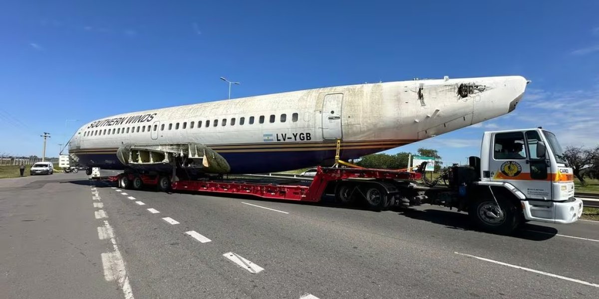 Con esta novedosa y exotica idea, en esta oportunidad se trata de un Boeing 737-200 de la empresa Southern Winds que estaba en el Aeropuerto Ambrosio Taravilla sin uso. La nave salió del aeropuerto.